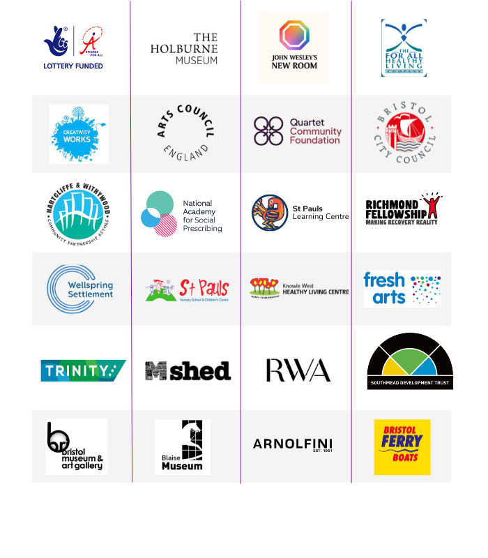 We have an excellent track record of devising projects shown in high profile and accessible venues, working in partnership with cultural venues such as Arnolfini, Bristol City Museum Service, RWA, The Vestibules, Southmead Hospital, GWR trains, Knowle West Health Park, Central Children’s Centre, the Hub Lockleaze, and Greenway Centre Southmead.
