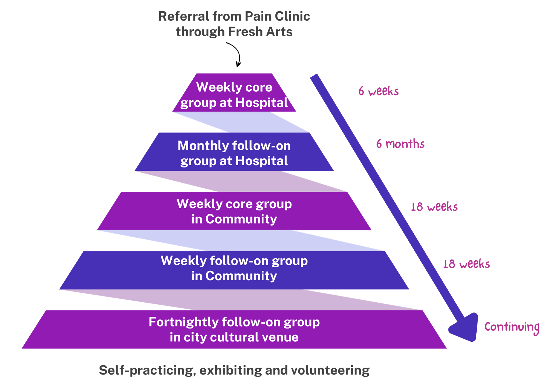The Pain Clinic referred her to the 6 week Fresh Arts on Referral programme held in the hospital community arts room.